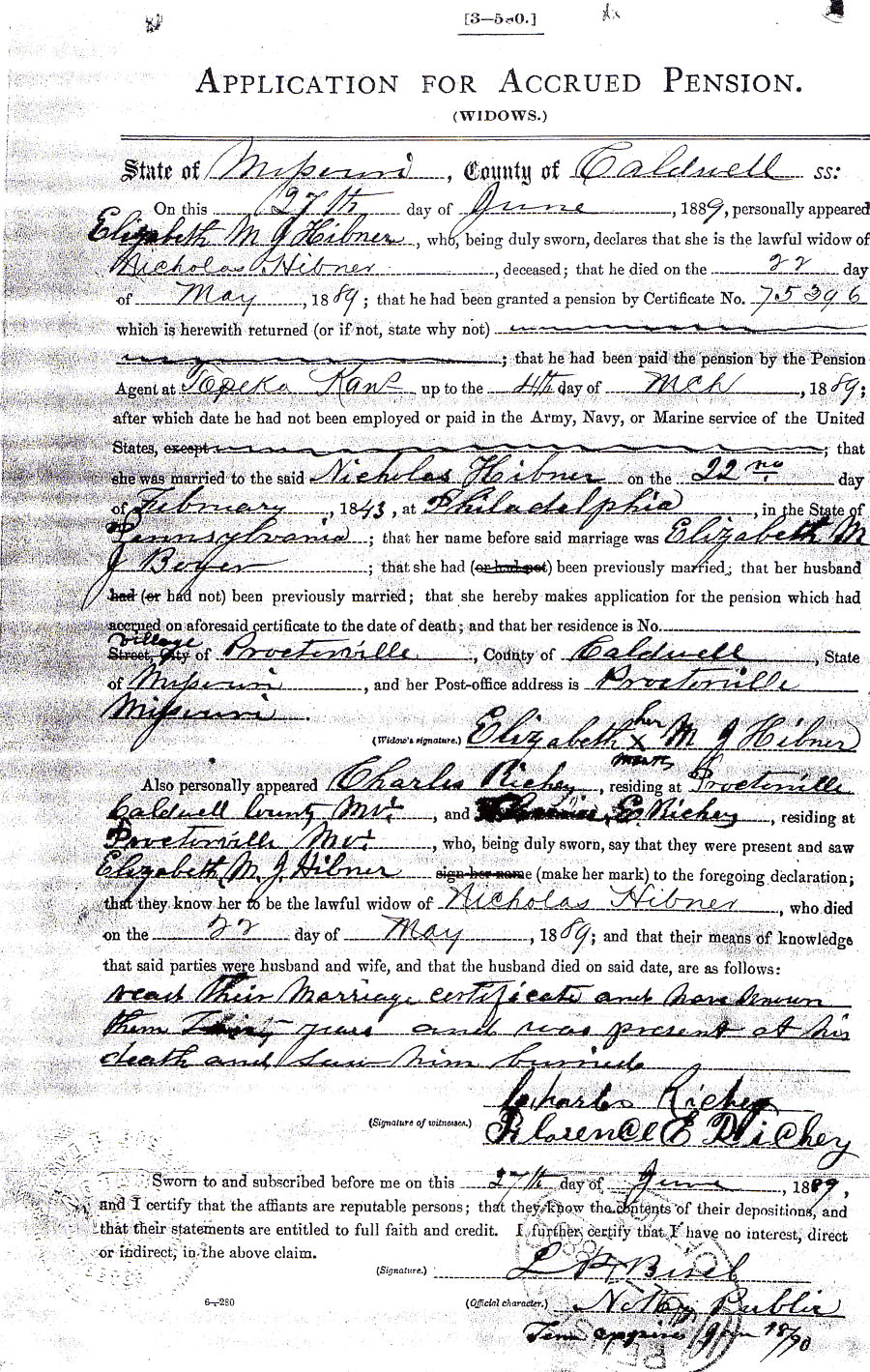 The pension application was successful. Nicholas Hibner was awarded a monthly pension. After his death his widow applied for, and received, her widow's pension