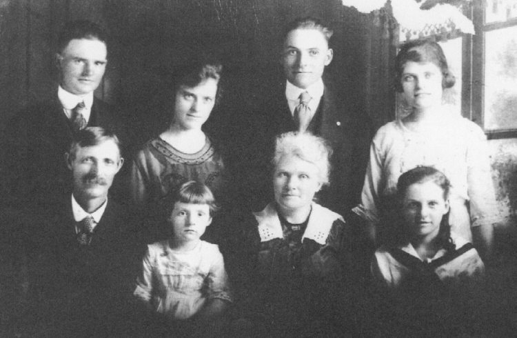 Left to right -- Standing: John Oras Long, Ruth Ida Long, Noah Glynne Long, Gladys Nora Long. Seated: Thomas Lincoln Long, Amy Long, Laura Ellen (Gaunt) Long, Ethel Long.