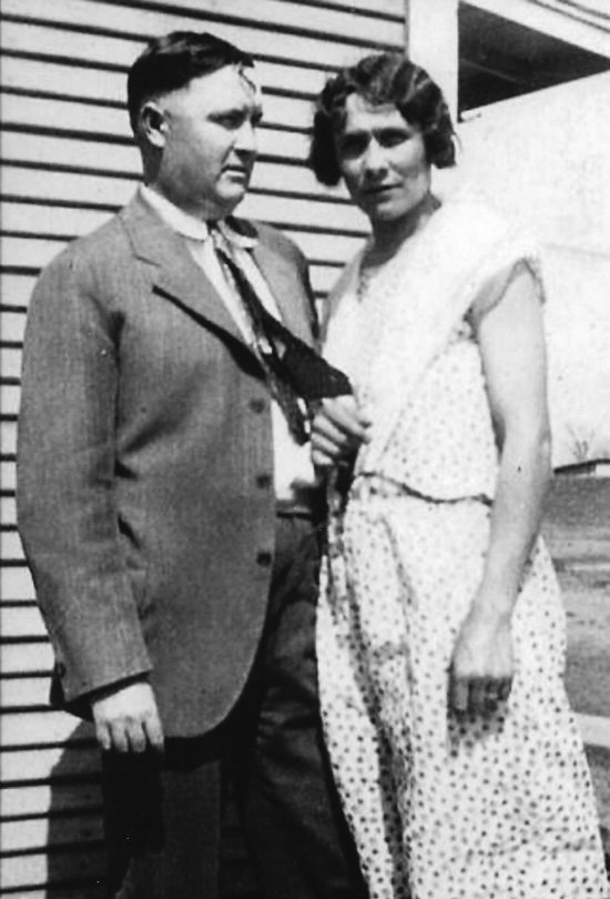 | Cecil Frazier was a son of Amos Taylor Frazier and Abigail Bashford. He was an engineer on the Burlington Route (Chicago, Burlington and Quincy Railroad). When his steam-powered engine came through Mooresville he gave a special "hello" whistle -- day or night -- that everyone recognized and understood. He is shown here with his wife Mary Ruth. |
