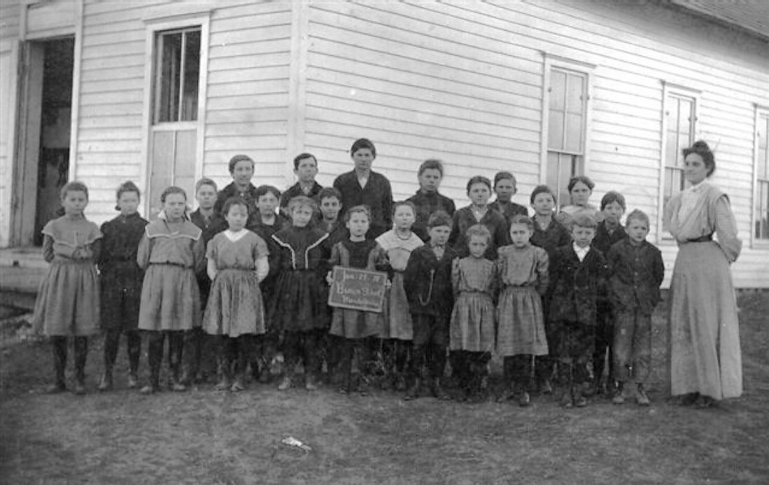 Brown School was located in Sampsel Township, two miles east and one mile north of the town itself. The chalked message appears to be dated 1898.