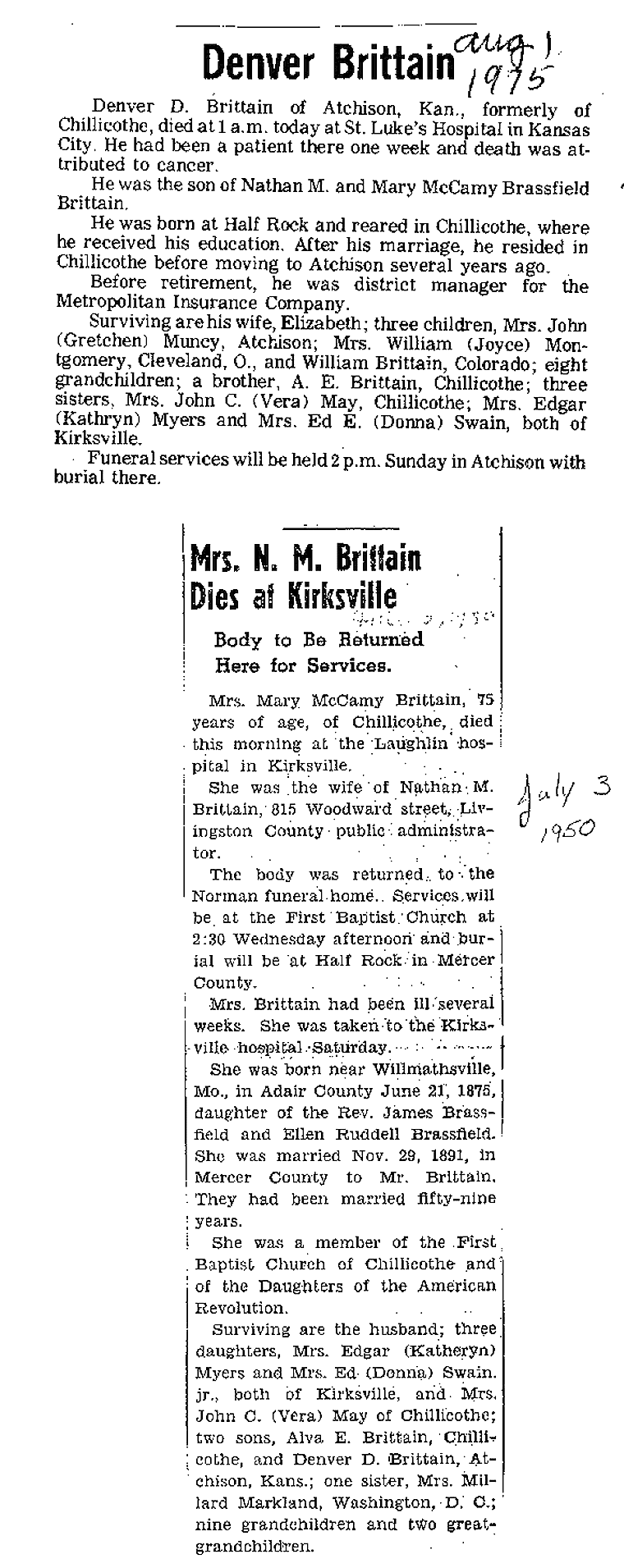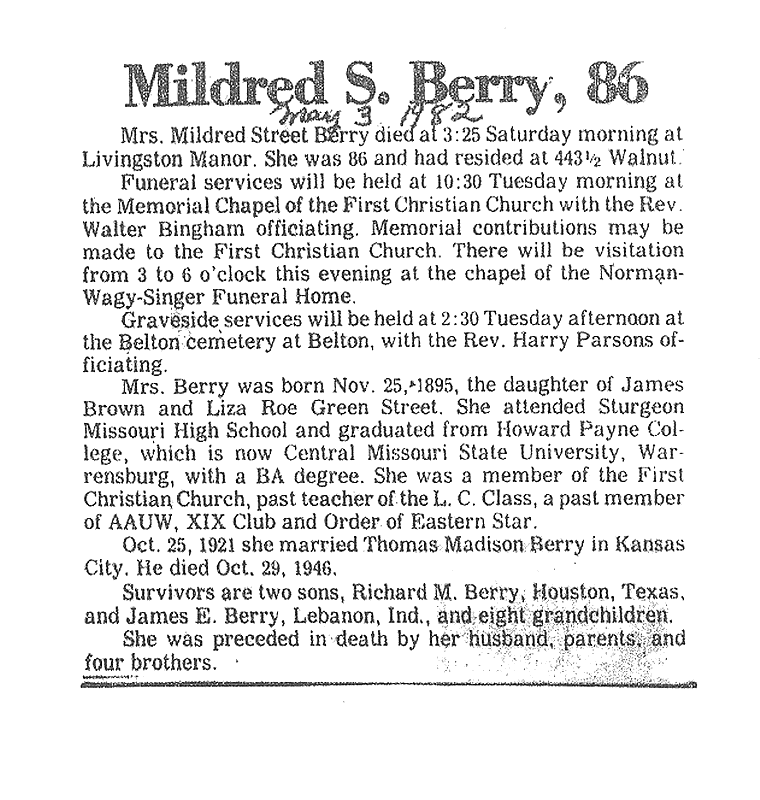 - Mildred, Mrs. Aubrey
