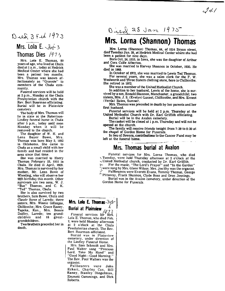 - Lula M., Mrs. Fred