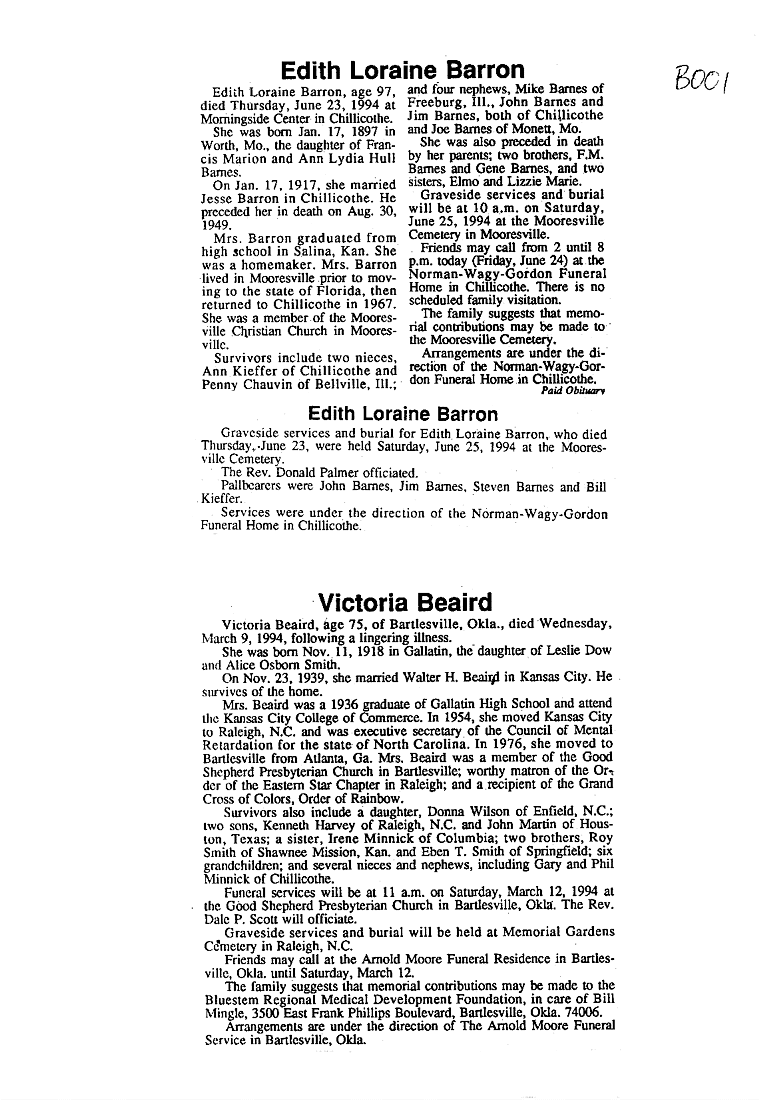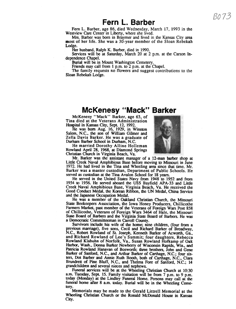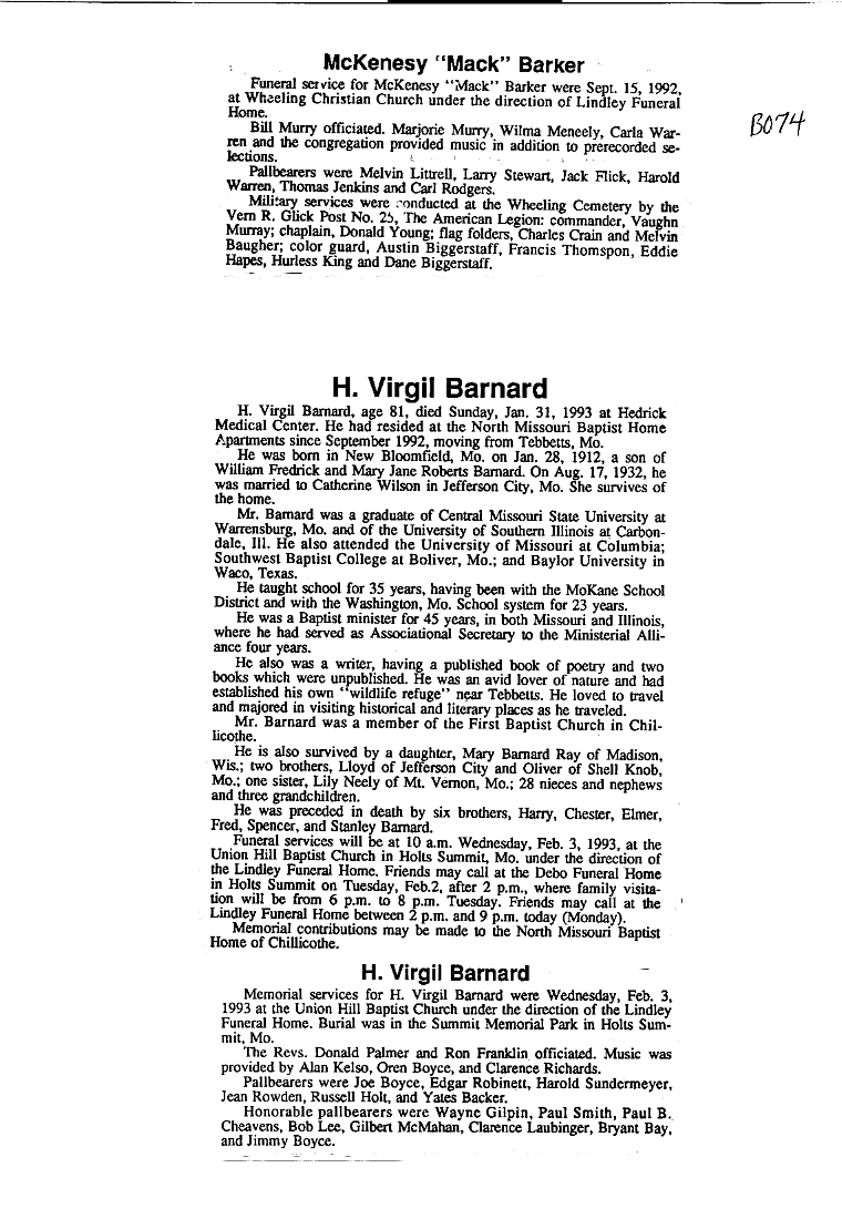 - Clarice M., Mrs. Howard