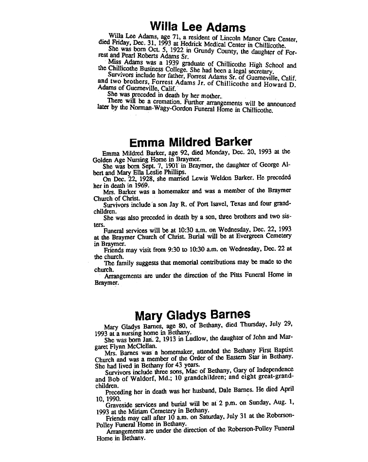 - Adda M., Mrs. John