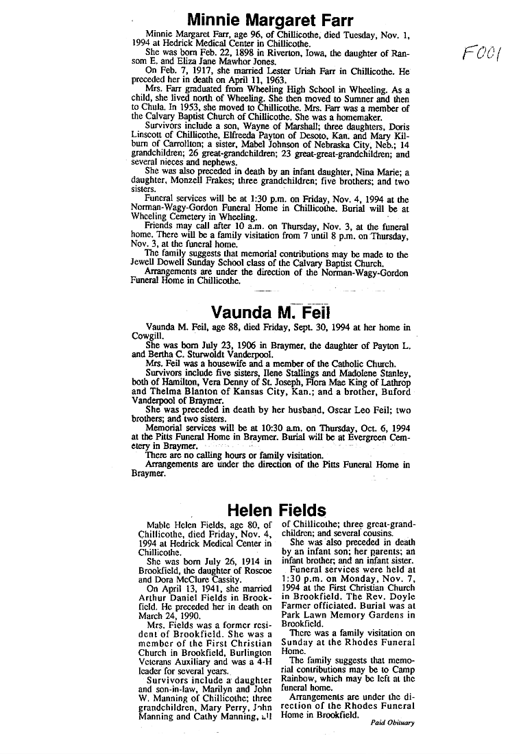 - "F" SURNAMES