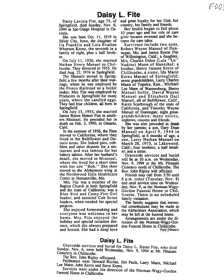 - Mary F., Mrs. Lester