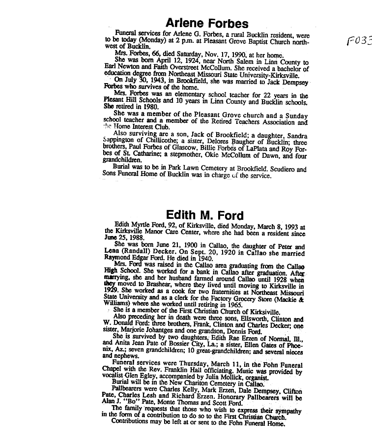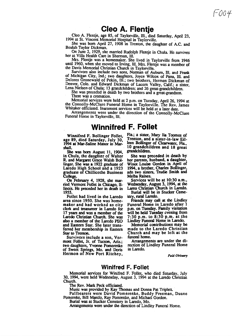 - Lena, Mrs. Clarence