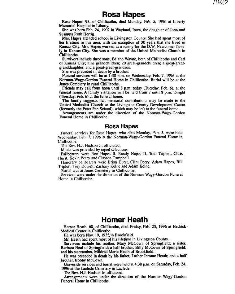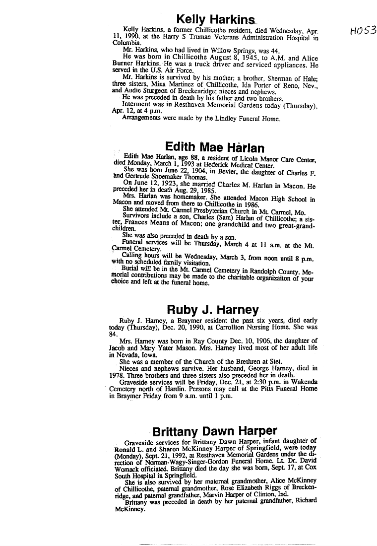 - "H" SURNAMES