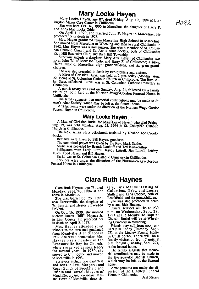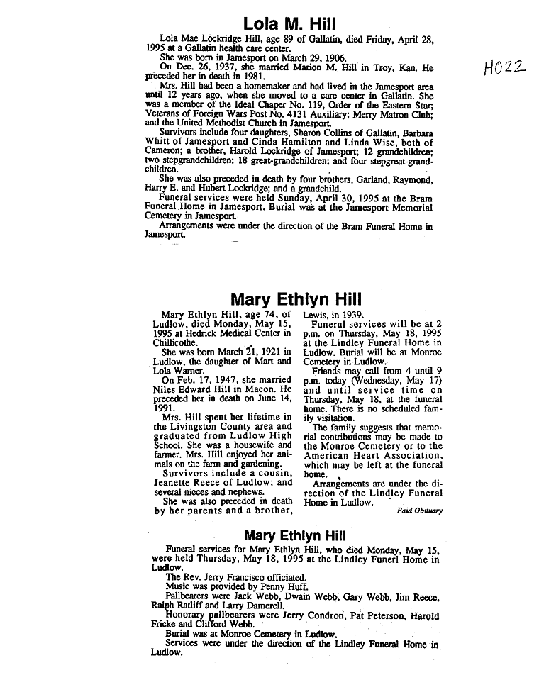 - Mary, Mrs. H. M.