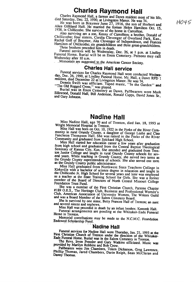 - HALL (continued)