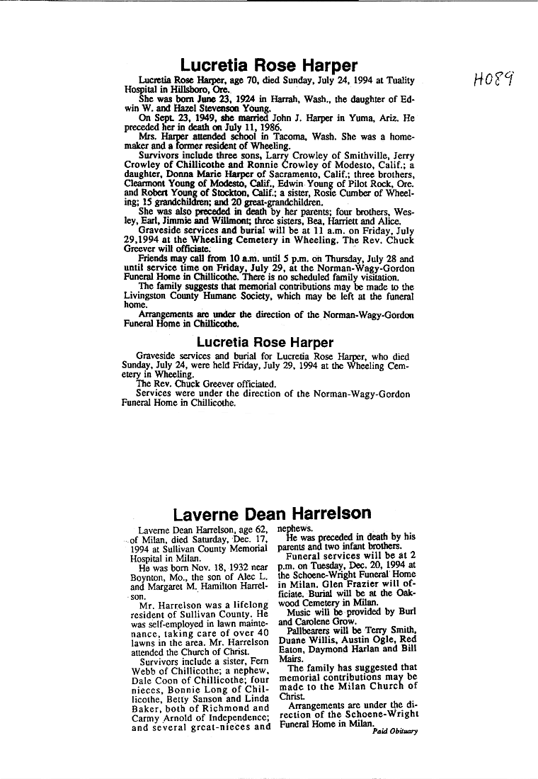 - Mildred, Mrs. Orville