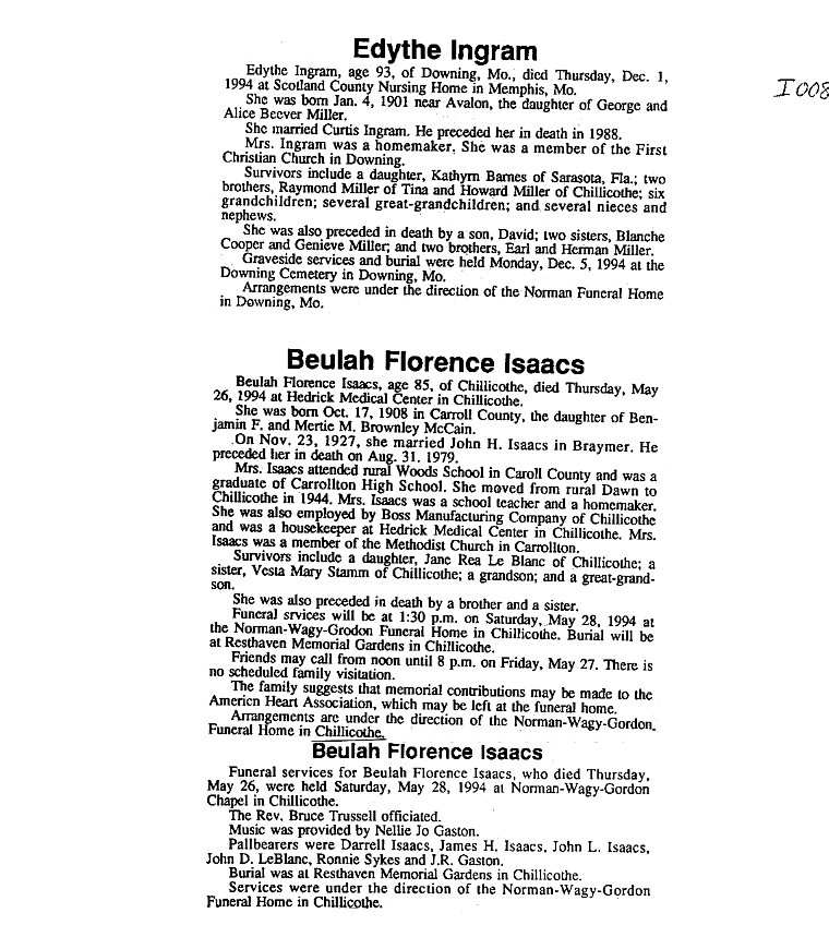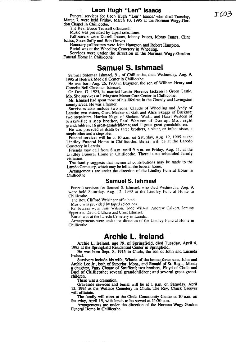 - "I" SURNAMES