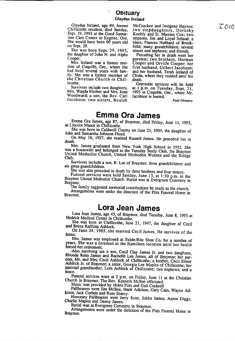 - James, Rev.