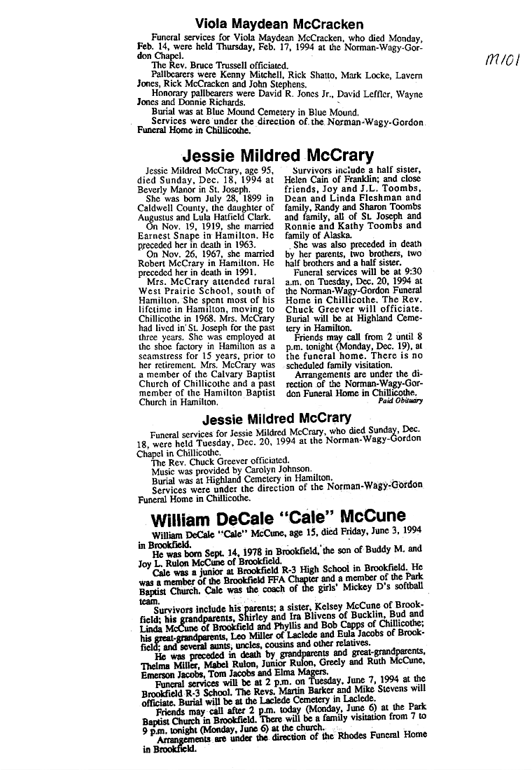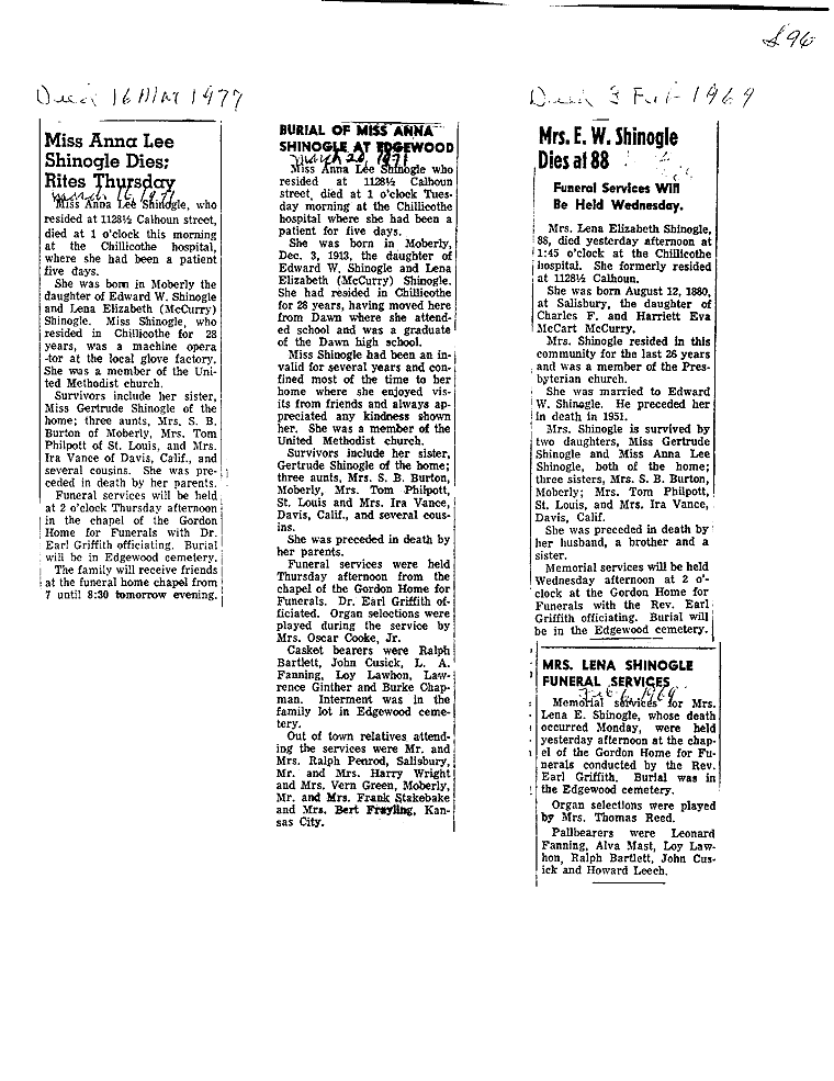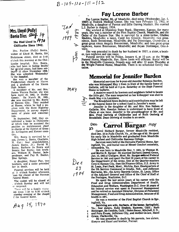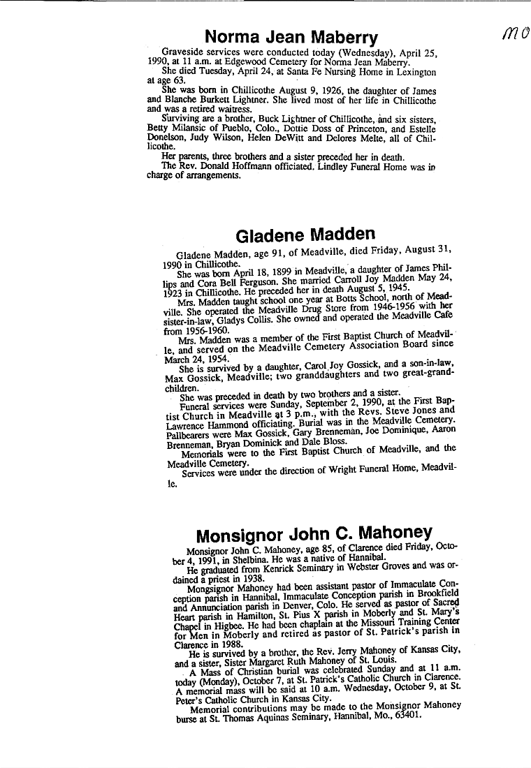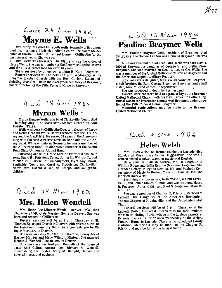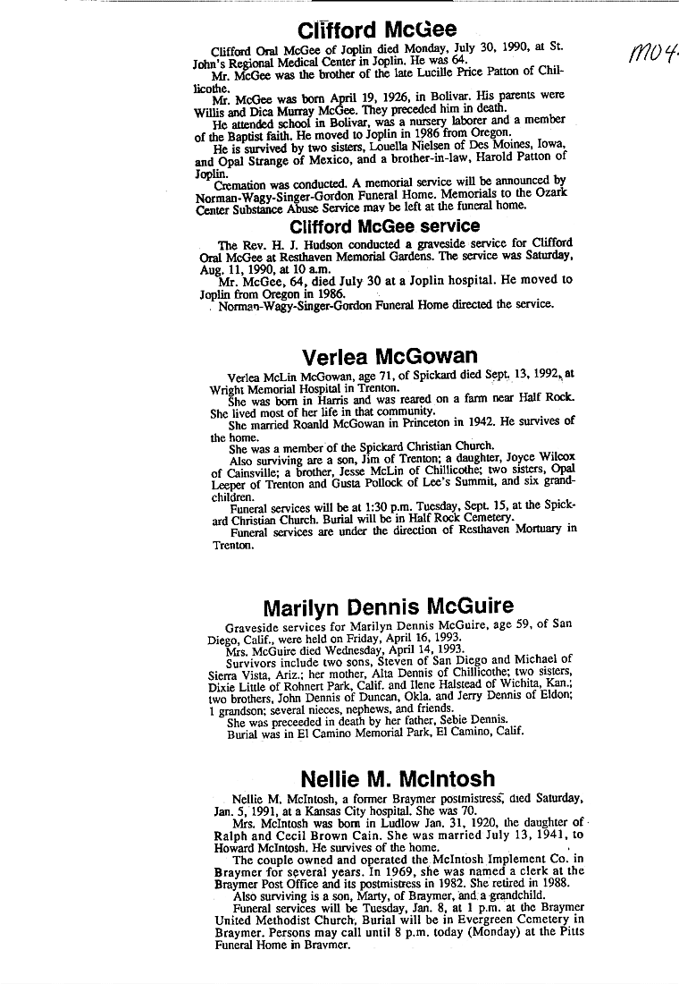 - Gladyce, Mrs. Olen