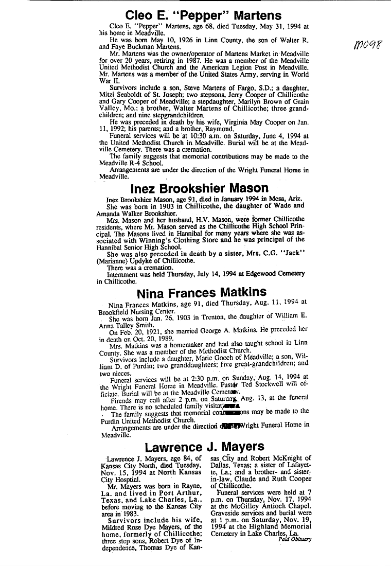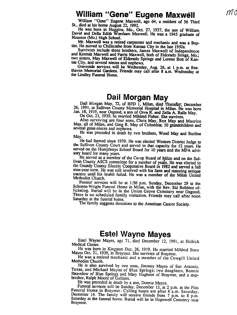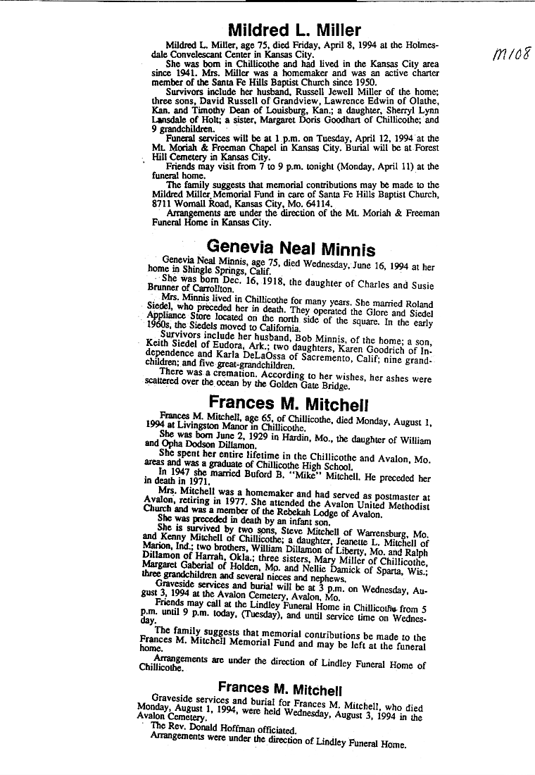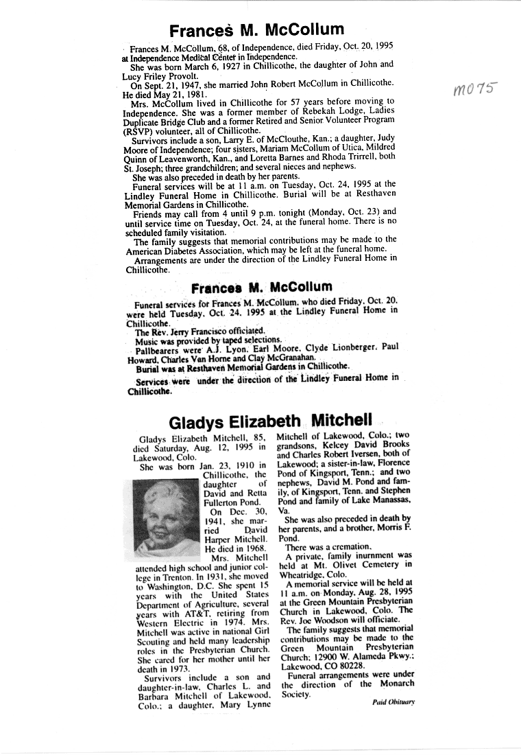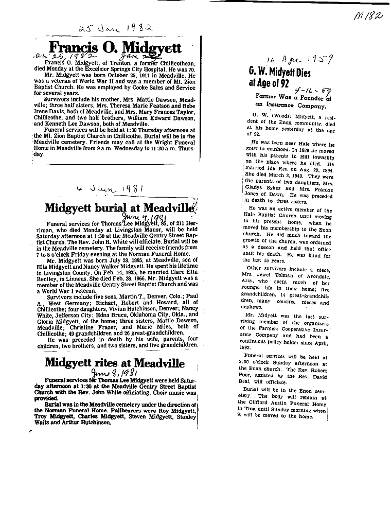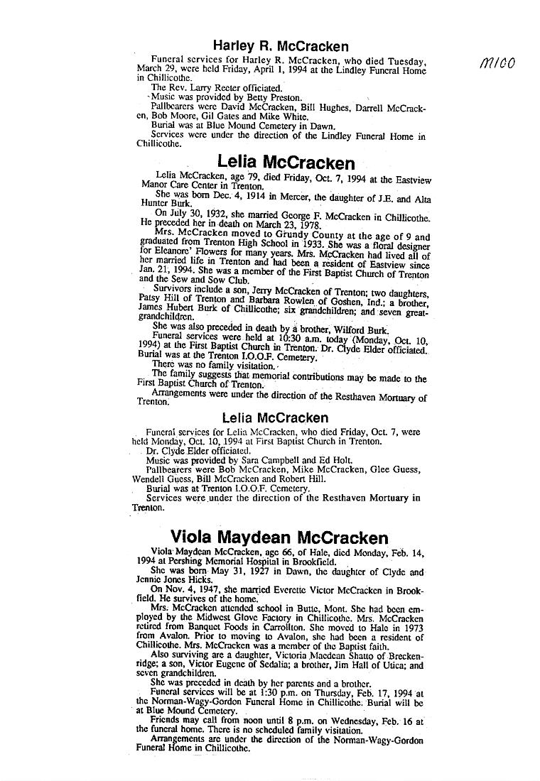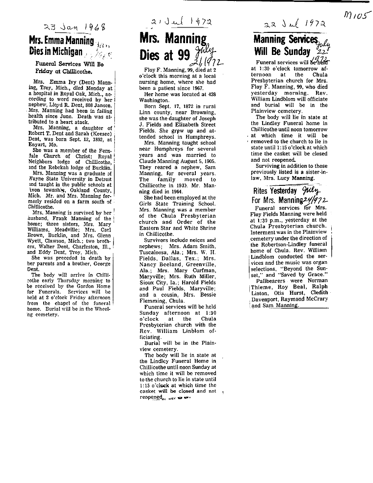 - Gladyce, Mrs. Olen