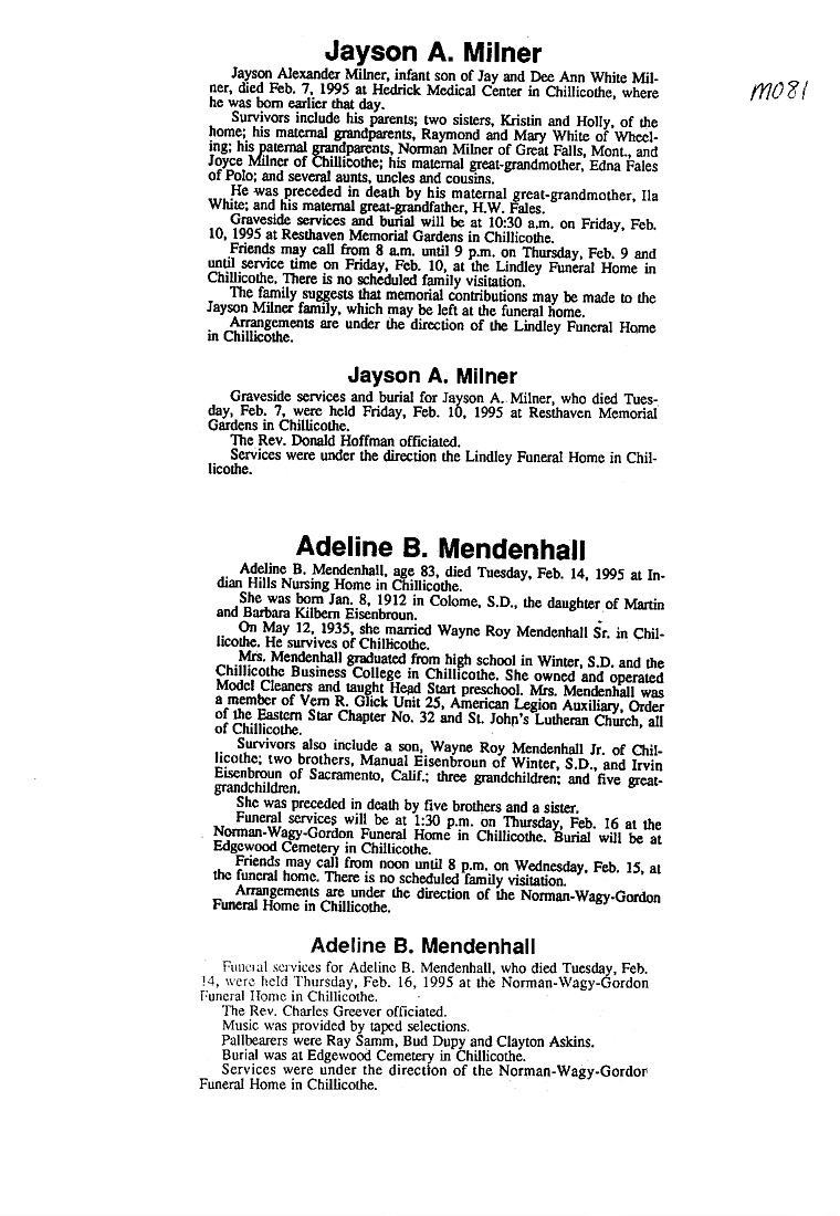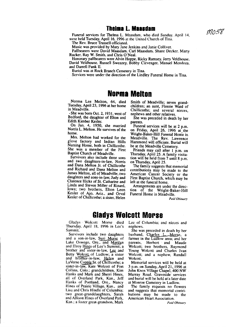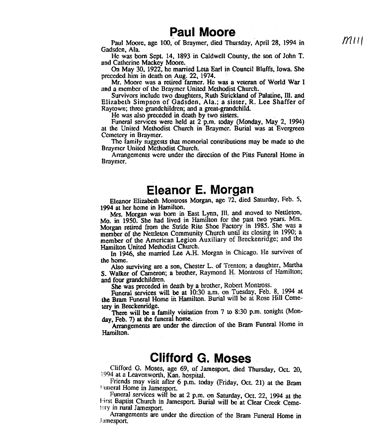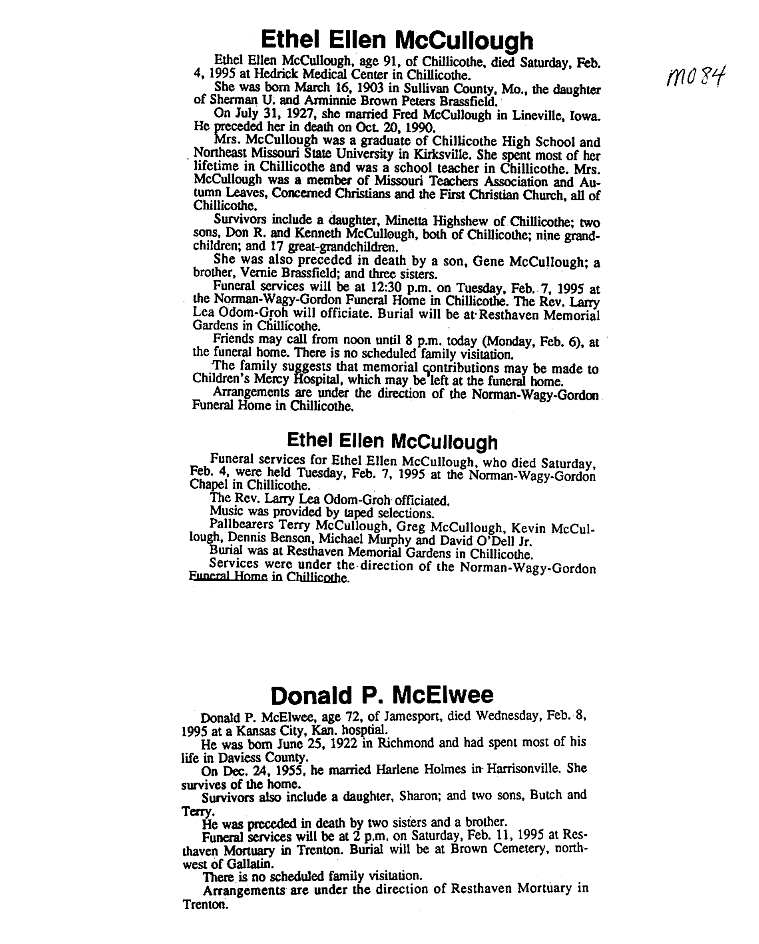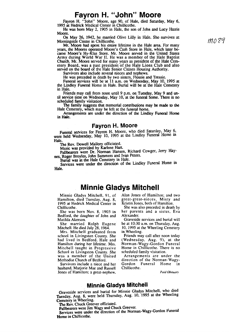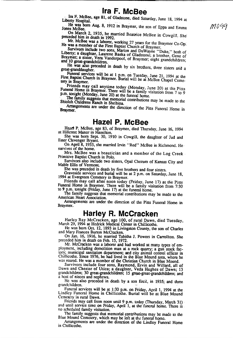 - Gladyce, Mrs. Olen