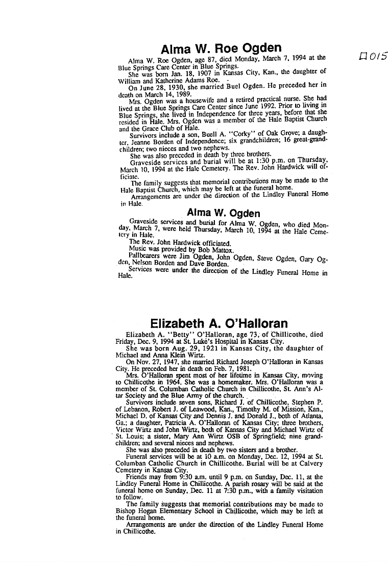 - Alma W. Roe