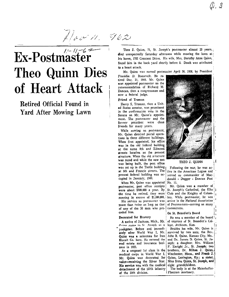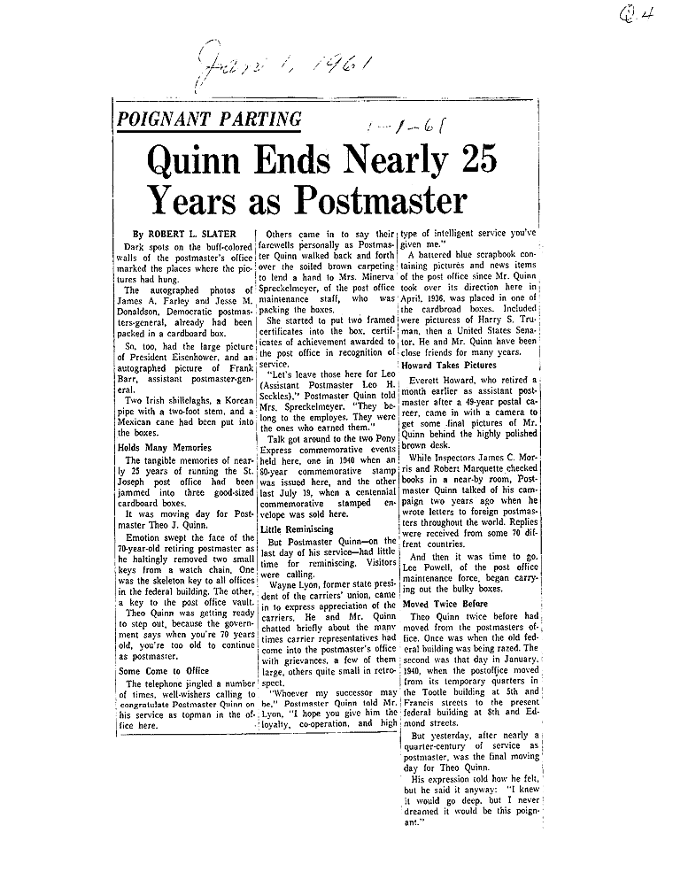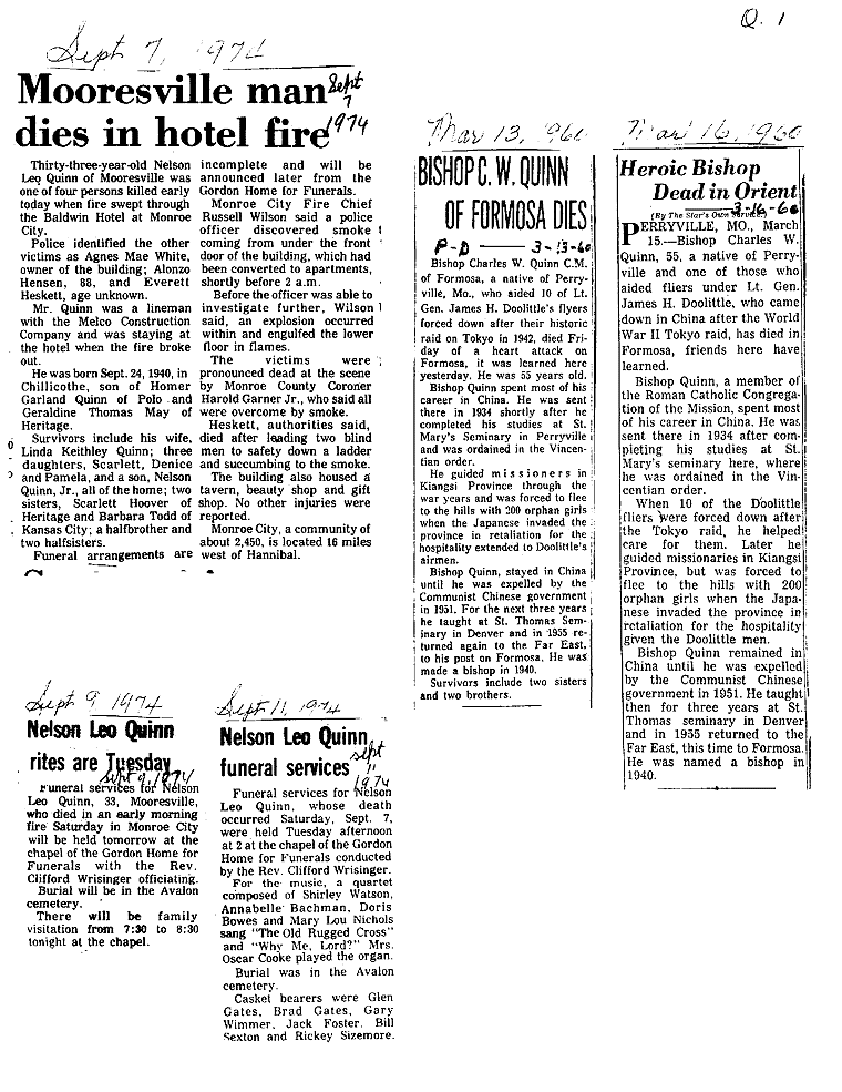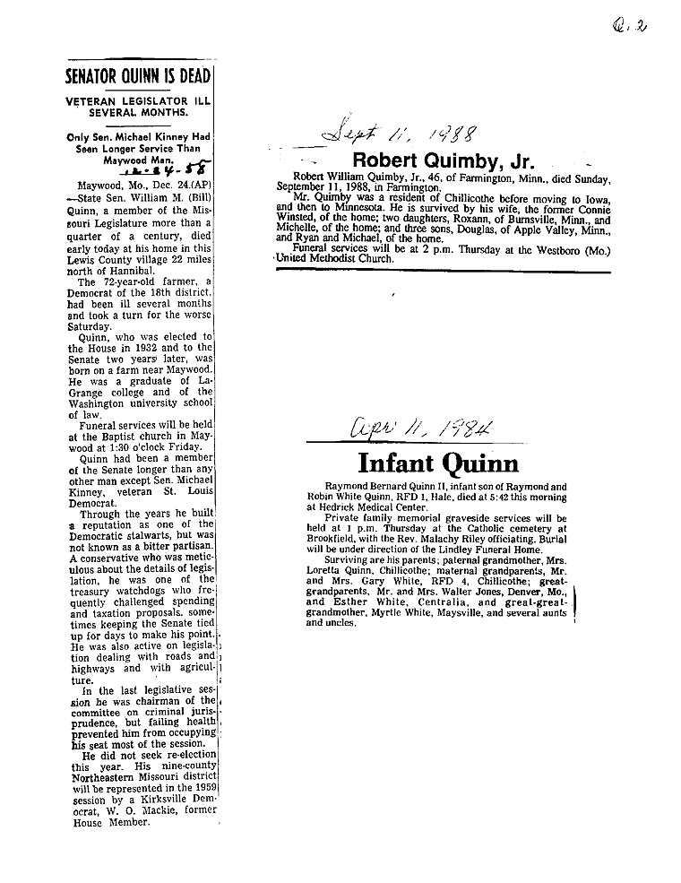 "Q" SURNAMES QUANTOCK Norman C. Pearl A. QUIGLEY Eugene L. QUIMBY Robert Jr. QUINN Charles W., Bishop Nelson Leo Raymond Bernard Theo Theo William, Sen.
