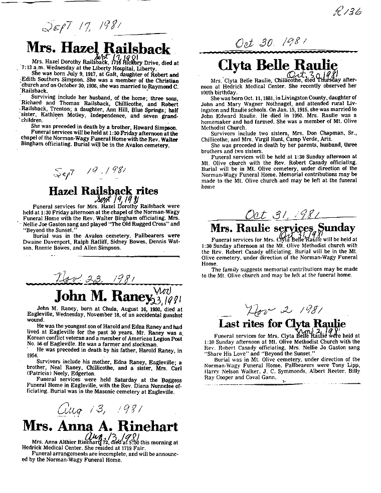 - Hazel, Mrs. Raymond