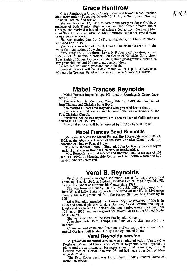 - Grace, Mrs. Raymond