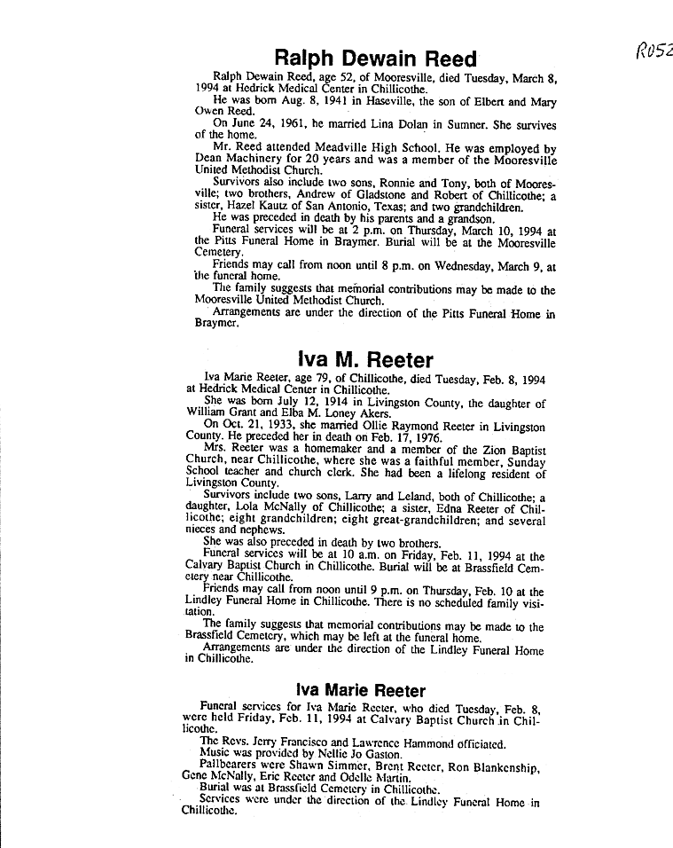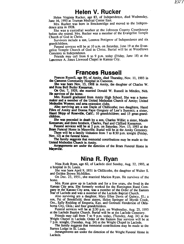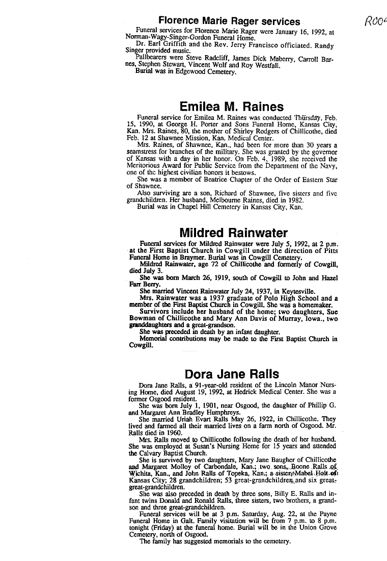 - Ruth, Mrs. W. H.