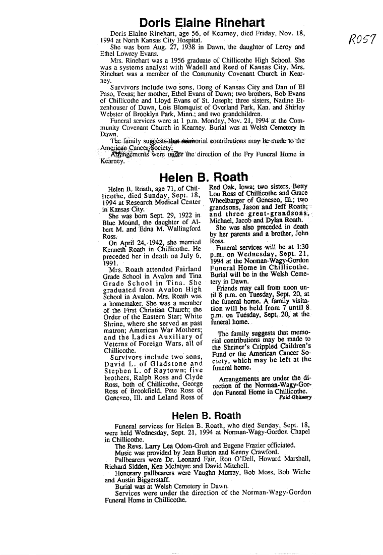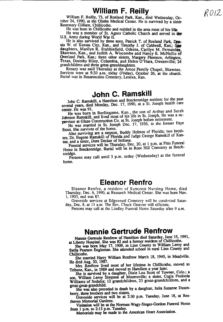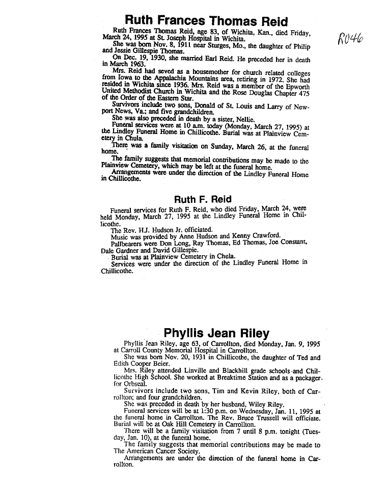 - Ruth, Mrs. William