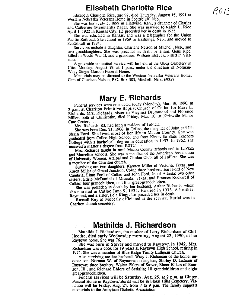 - Mildred L.