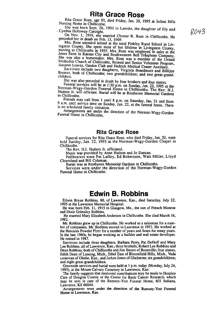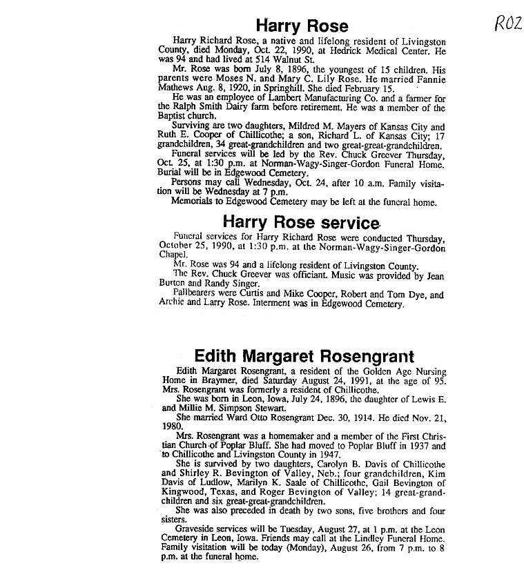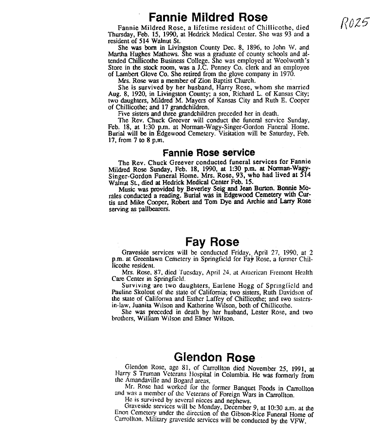 - Rose, Mrs. Clifford