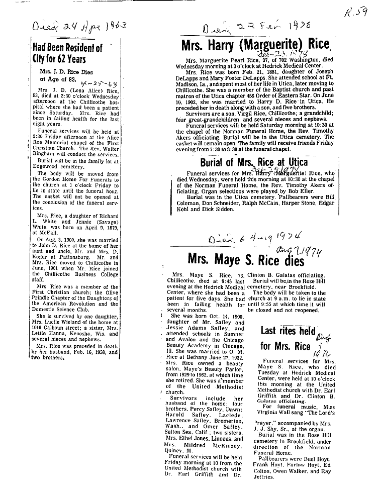 - Margaret, Mrs. Ray