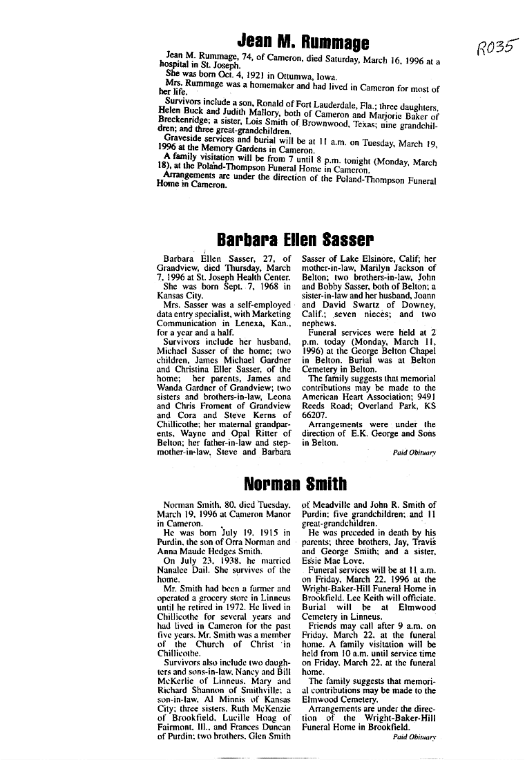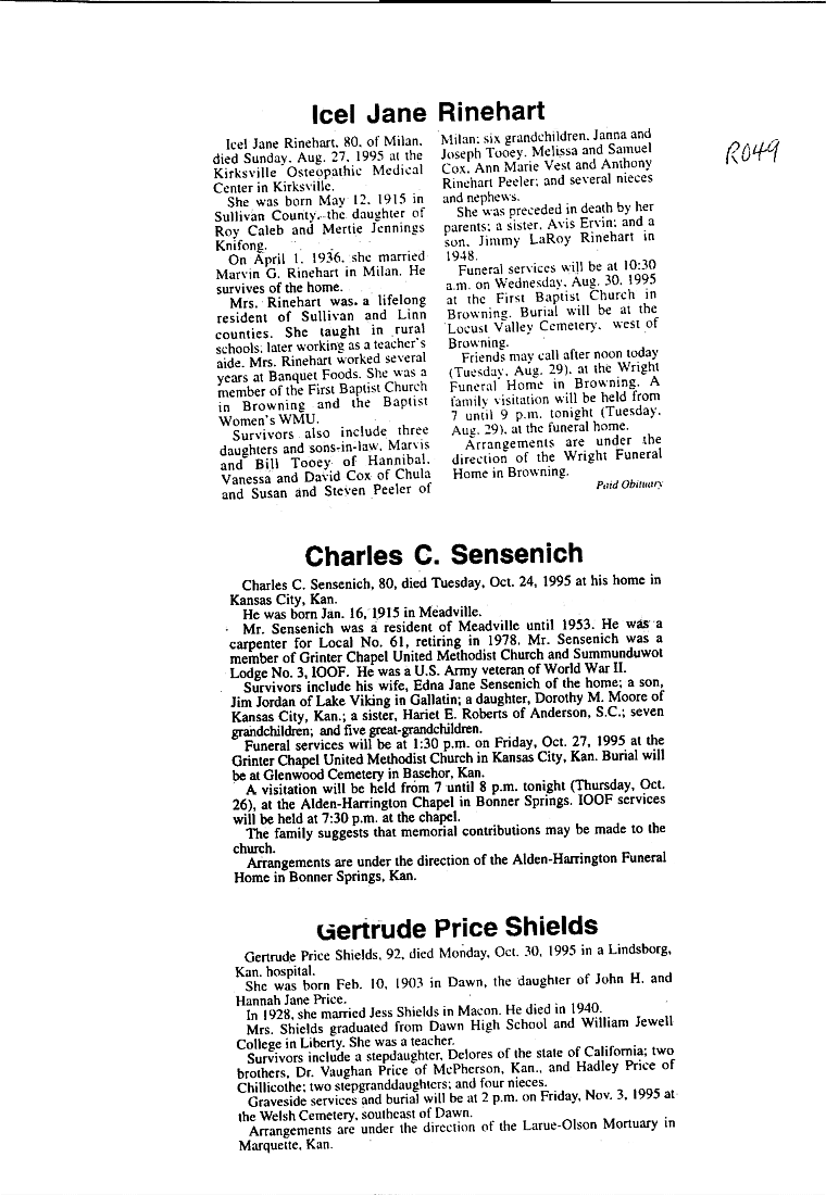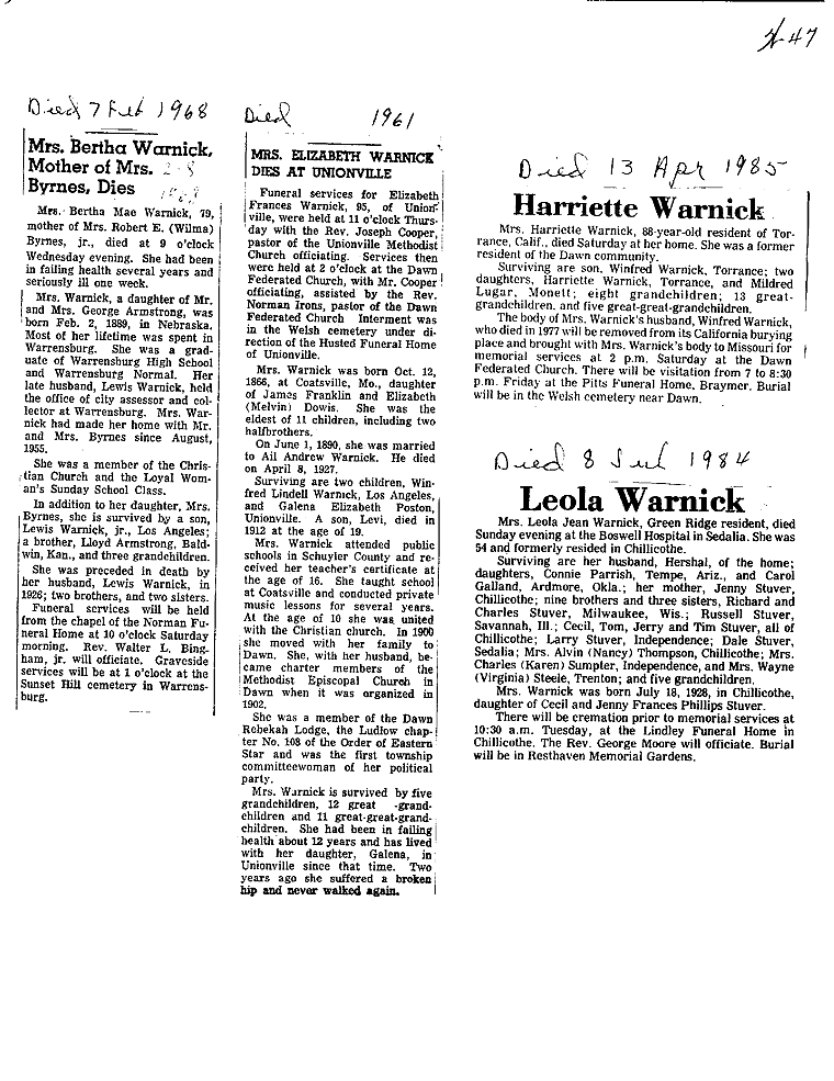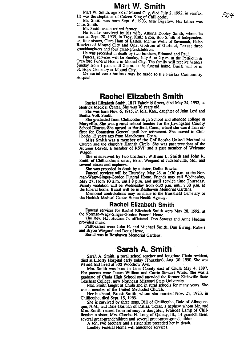 - Rowenia, Mrs. Marion