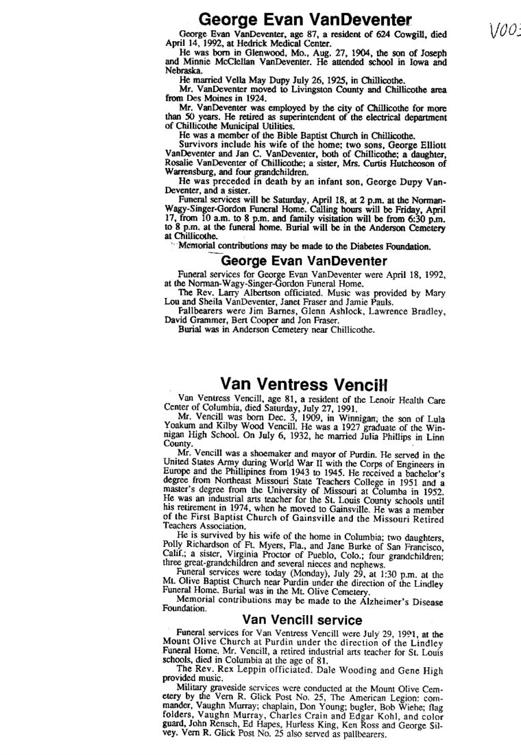 - VANDEVENTER