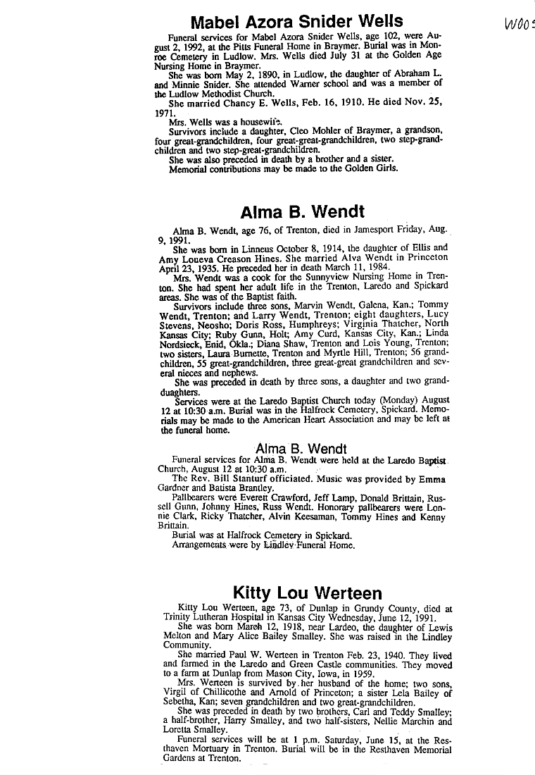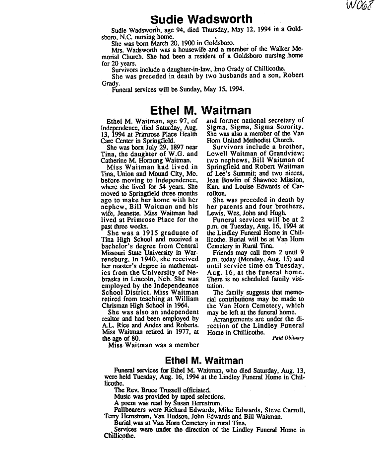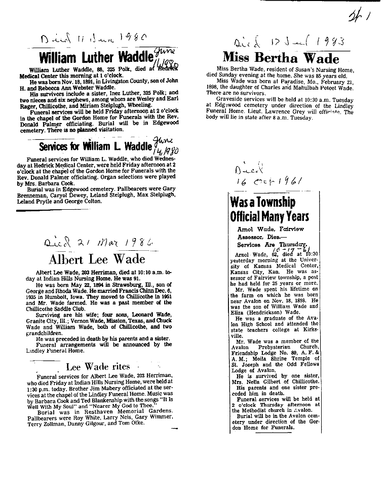 - Bertha, Mrs. Wade