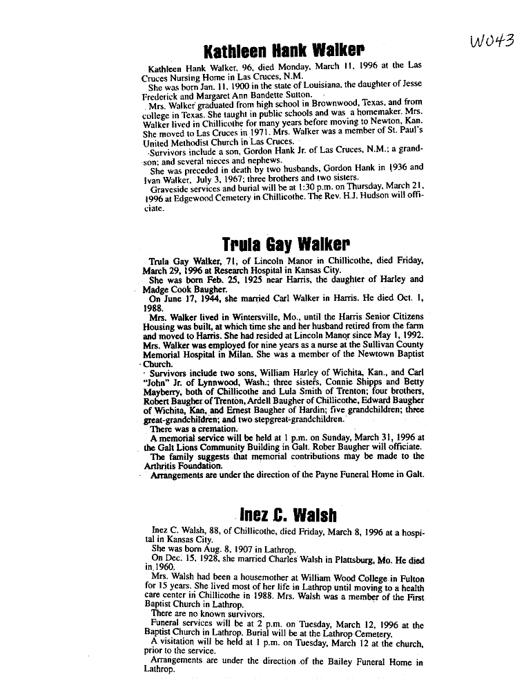 - Mary, Mrs. I. W.