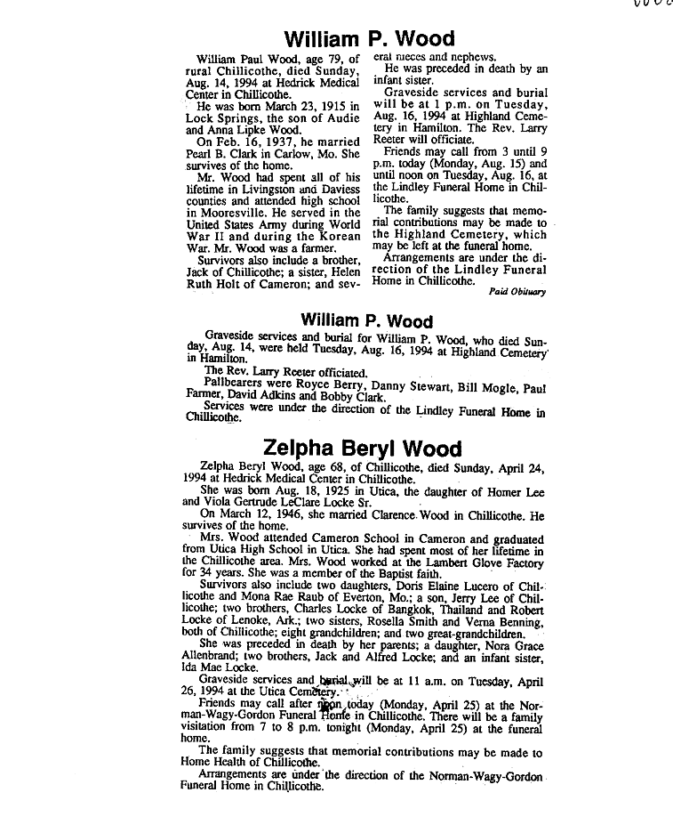 - Corine, Mrs. Wood